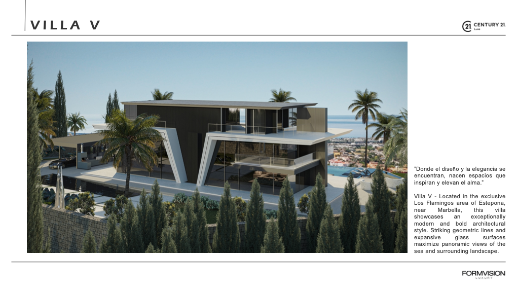 We CENTURY21 Luxe are specialise in turnkey luxury projects in the most prestigious regions of Southern Spain: Marbella, Estepona, Benahavís and Sotogrande. From the initial concept to key handover, we manage every detail of your project. Our fully turnkey approach seamlessly integrates design, permits, construction, interior design and finishing, all coordinated by one experienced team. This ensures a transparent process, consistent quality standards and a result perfectly tailored to your lifestyle.Our projects are defined by timeless architecture, premium materials and refined craftsmanship, enhanced by the latest technologies and sustainable solutions. Whether it is an exclusive villa, a contemporary apartment or an investment project, we create homes that unite comfort, elegance and long-term value.